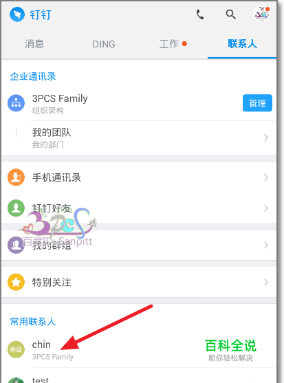 首先进入钉钉联系人,找到要向他发送红包的员工。当然也可以直接到群里发送红包。