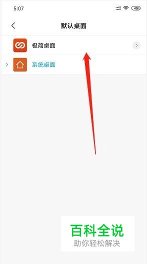 第三步:我们进入桌面与最近应用之后呢,我们可以看到当前的桌面信息为:系统默认,我们点击它。