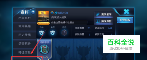 之后会进入王者荣耀游戏的“资料”页面,在资料页面我们点击左侧的“交友名片”按键。