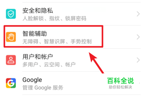 在设置列表内,我们选择页面中的“智能辅助”的选项进入。