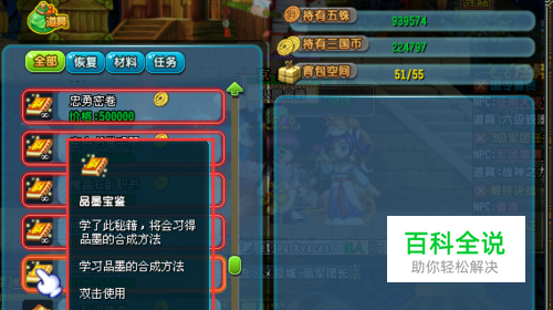 品墨宝鉴【】,制作品墨,在【江陵】古书商人处够买,费用为50W三国币。