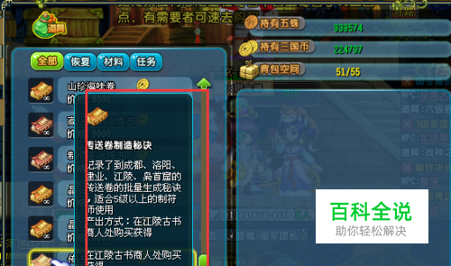 传送卷制造秘决【5级】,批量制作成都、洛阳、江陵、枭首窟传送卷,在【江陵】古书商人处够买,费用为8K三国币。