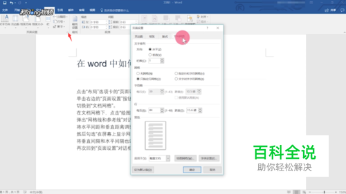 单击右边的“页面设置”按钮,弹出的“页面设置”对话框,切换到“文档网络”。