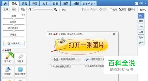 首先下载美图秀秀,已经下载安装好了的,直接打开,选择打开一张图片。插入想要制作的全家福照片。