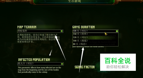 进入游戏前,需要你调参数,就是游戏的难度,然后再建立地图,地图以时间为基准撑过多少天你就赢了,在这么多天内记得努力发展自己的科技和建造还有武器等。