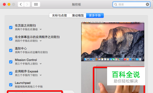 显示桌面方法三:进入“系统偏好设置”-“触控板”-“更多手势”,选择“显示桌面”,张开拇指和其他三个手指操作触控板即可显桌面,反向操作即可返回当前。