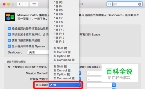 如果觉得control+向上键操作不便,可进入“系统偏好设置”-“mission control”-“mission control”,修改为“右shift键”,会更加方便操作。