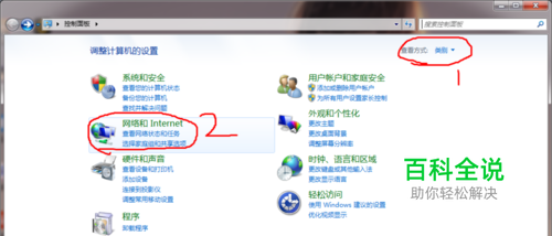 在控制面板界面,选择查看方式为类别。控制面板一共有八大类,选择系统和安全下面的网络和Internet,下面小字写着查看网络状态和任务,选择家庭组和共享选项。