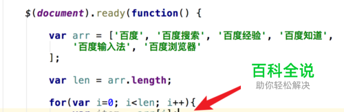 接着用一个for循环来做遍历,for从下标0开始,到数组长度len-1结束。