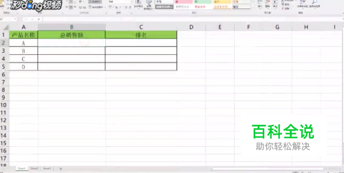 第一步:打开excel文件,点击需要使用合并区域引用计算排名的产品A,销售额单元格B2