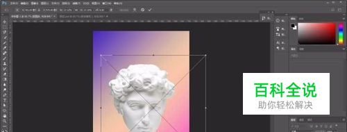 把抠好的雕塑头像拖进画布,调整到合适的位置和大小