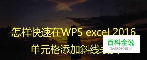 给表格的首个单元格添加斜线表头,是我们经常要用到的功能,比如我们在制作一个表格说明的时候,下面就详细的告诉小伙伴们。怎样快速在WPS excel 2016 单元格添加斜线表头
