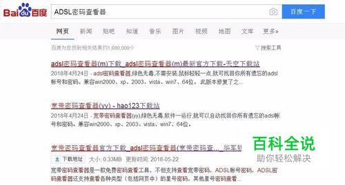 首先,请大家使用搜索引擎搜索“ADSL密码查看器”关键字,在搜索结果页面中,在网站中进入下载页面。