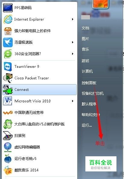 单击“ 开始”-“ 控制面板”,打开控制面板。