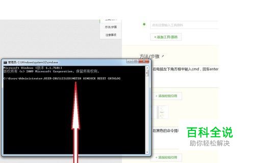 在黑色的命令提示框里输入:NETSH WINSOCK RESET CATALOG,然后enter回车