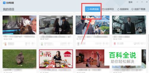 首先,打开电脑上的软件,进入首页点击 新建视频按钮