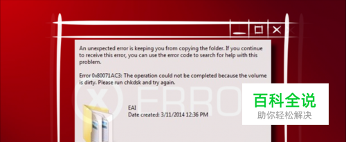 意外的错误是阻止您复制文件。如果您继续收到此错误,则可以使用错误代码搜索此程序的帮助。 错误0x80071AC3:由于卷很脏,操作无法完成。请运行chkdsk并重试。