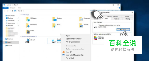 打开这台电脑。 右键单击遇到问题的驱动器,然后选择“ 属性”。 打开工具选项卡,然后单击检查或立即检查按钮。 Windows 10用户应点击扫描并修复驱动器。 Windows 7用户应该标记提供的所有选项并单击开始。 等待扫描完成并检查驱动器是否已自动修复。
