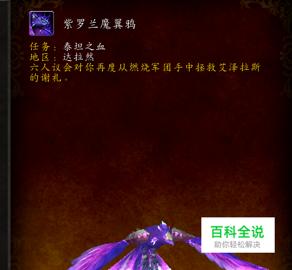 魔兽世界紫罗兰魔翼鸦坐骑可谓是版本最终坐骑,7.0版本之后魔翼鸦可能就要绝版,该坐骑获得方法如下: