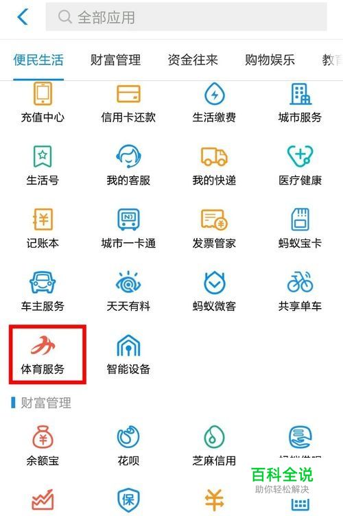找到“体育服务”,并打开。