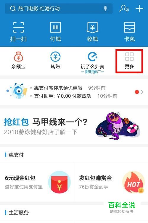 打开支付宝,在首页点击“更多”。
