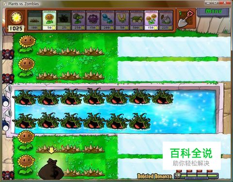 攻略:如图为最简单过法。开始2列小向,第一辆冰车地刺扎之,否则Restart吧……来了雪橇没关系,先上2个地刺,向日葵被吃再继续上即可。然后就是傻瓜过法,消耗一个补一个 海藻不用说,CD了就放即可 PS:比较看RP的哦~