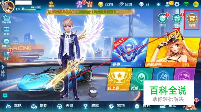 打开QQ飞车手游,进入游戏大厅后,点击右上角的“商城”选项。