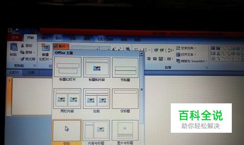 1.打开ppt,在上端“开始"的第二排的幻灯片那里找到“版式”再选择“空白”;2.然后在“插入”中点击“图片”,选择所需文件夹里的图片,双击便可插入。