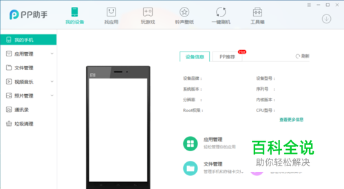 手机连接好设备之后就可以在PP助手主界面看到设备信息了。