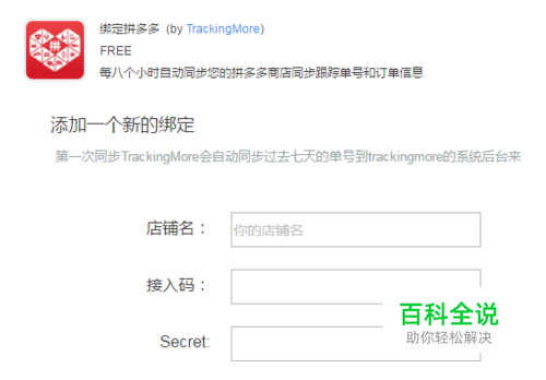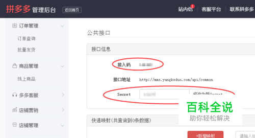 需要填写三个地方,分别是店铺名、接入码、secret密钥。接入码和密钥,可以在你的拼多多商家后台界面的公共接口位置获得。其实绑定起来还是比较简单的,填好后,点击下面的蓝色按钮绑定成功。