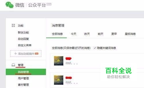 消息回复 支持查看用户发来的消息并进行回复 通过“公众平台助手”小程序回复过的用户,将出现在“最近会话”中
