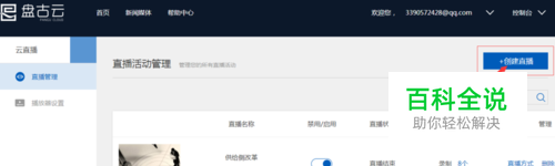 在盘古云“直播管理”中心创建直播频道。