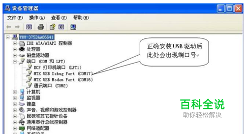 电脑上安装好驱动,将手机完全关机,按住减小声音的按键连接电脑,连接成功会出现端口,如图所示