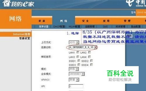 进入后界面.打开网络--宽带设置.在连接名称里找到你当地VPI/VCI连接..