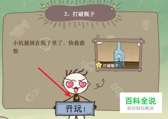 这一关,我们的主角被困在瓶子里了,需要我们将其救出来。