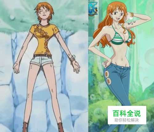 娜美:两年前还像个少女,两年后完全变成了一个成熟的女人,当然不光是脸蛋变成熟了,娜美的三围也变得更加成熟。还有一个是发型,两年前是一个短发,用现在的审美观看的话有点土里土气的,两年后发型变长了,很适合成熟的娜美