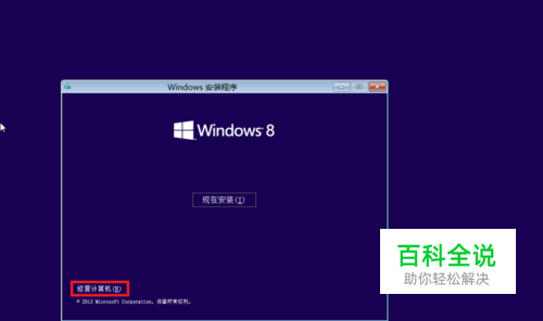 用U盘或光盘启动到Windows安装界面,单击右下角<修复计算机>