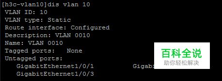 最后我们使用”dis vlan 10"查看交换机配置,可以看到三个接口都已经加入到VLAN 10了。