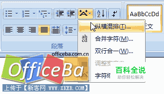 在Word2007中找了好久都没找到纵横混排这个菜单,请问是不是Word2007没有这个功能呢?