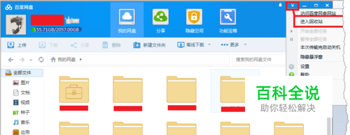 如果下载有PC版的,请打开百度网盘。点击”设置“ ----- ”进入回收站“。