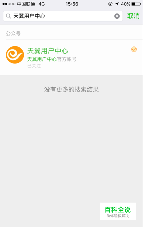 1.通过微信上通讯录下的公众号一栏搜索“天翼用户中心”公众号。