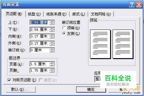 这样做:单击“文件”→页面设置,在打开的“页面设置”对话框中,在“页边距”选项卡中勾选上“对称页边距”项准备双面打印(如图1)。图1 对称页边距