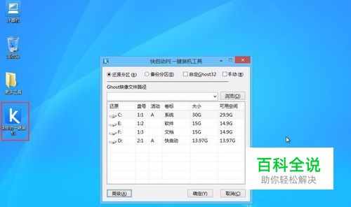 进入pe系统后,会自动加载快启动一键装机工具,若没有,请双击桌面上对应的“快启动一键装机”图标,如下图所示: