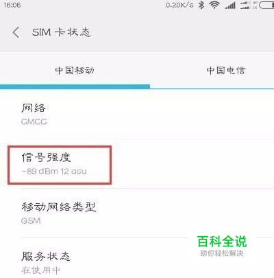 检查手机网络信号 手机信号好不好,要看信号值。那么,怎么来查看这个手机信号值呢? 安卓手机:打开【设置】—【关于手机】—【状态信息】—【SIM卡状态】-【信号强度】