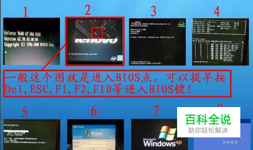 1,进入电脑桌面前一般都会有八个画面,这只是比较老式电脑的一般模式类型,有的电脑把登陆窗口与系统选择界面给关闭了,所以不会完全有这八个画面 ,现在很多新电脑,尤其是笔记本电脑也并不一定有这八步,为了兼容老式电脑,这里还是以这八步为标准来讲述进入步骤。 显卡信息(图1)->log图信息(图2)->BIOS版本信息(图3)->硬件配置信息(图4)->系统选项(图5)->Windwos登陆(图6)->Windows加载(图7)->欢迎画面(图8) 八个画面解释说明: 图1,显卡的版本信息。 图2,log图,这里也是进入BIOS的进入点,这里要不进,后面就没机会再进BIOS了,在这里,还得先说两件事, 第一件是BIOS密码的事,很多人的电脑BIOS是没有设置密码的,可以直接进入BIOS,如果有密码,就先得输入密码才能进入BIOS。 第二件是COMS信息丢失的事,如果没有了COMS配置信息,就不会进入第三个画面,而是进入配置错误提示画面。 图3,显示BIOS的版本信息等等。 图4,显示硬件配置信息。 图5,在这里选择你要启动的操作系统。 图6,如果设置了用户帐户和密码,就要先进行登陆, 图7,加载Windows。 图8,欢迎画面是最后一个进入桌面前的画面。
