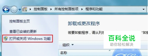 一、进入Win7的控制面板,选择左侧的打开或关闭Windows功能。