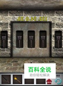 第八十关,电梯门及周围墙壁上有五个火把,电梯门前有一个圆形石块按钮。电梯门上方的数字反过来就是132.54.0.53,火把排序从右至左,最右边的代表数字“1”。