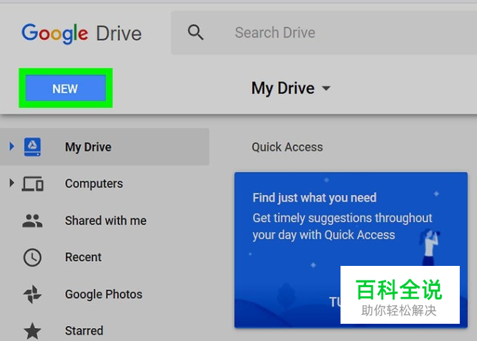 点击 新建。这个按钮位于页面的左上角。接着打开一个下拉菜单。 如果你想要编辑的PDF文件已经存在于谷歌文档中,可以跳到“选择你的PDF”步骤。