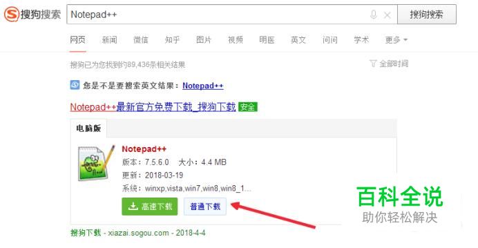 首先需要在电脑上面下载一个代码编辑器,我使用的是Notepad++演示。直接浏览器搜索“Notepad++”点击下载。