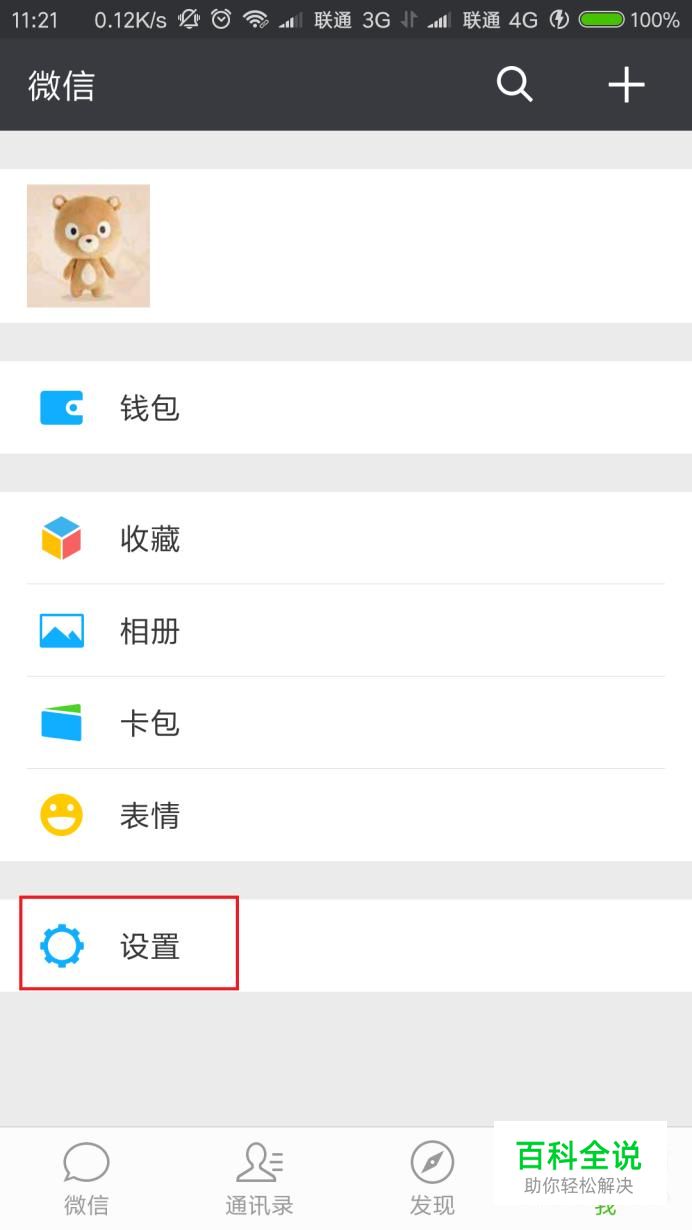 首先,打开微信应用软件主页面,点击页面底部“我-设置”菜单选项。